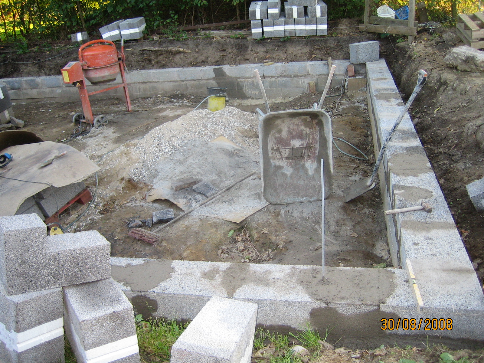 fundament, de første 3 skift i fundablokke, de sidste 3 i LecaTerm blokke